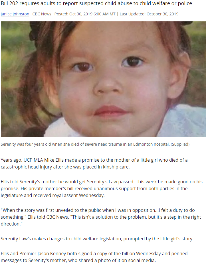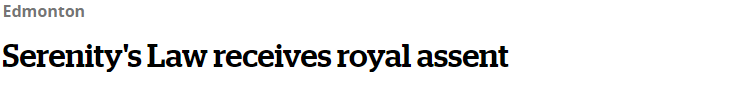 Posted Under: Mike Ellis 30 Oct 2019 https://www.cbc.ca/news/canada/edmonton/serenity-law-bill-202-1.5340523